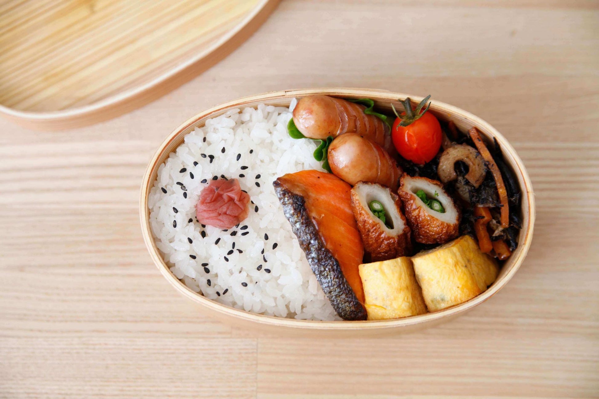 Magewappa is a great material for bento boxes. As well as being sustainable and plastic free the wood allows moisture to escape and enter, controlling humidity and making sure your food stays fresh. Even better cedar wood has bactericidal properties, making it a great choice for a bento box.
