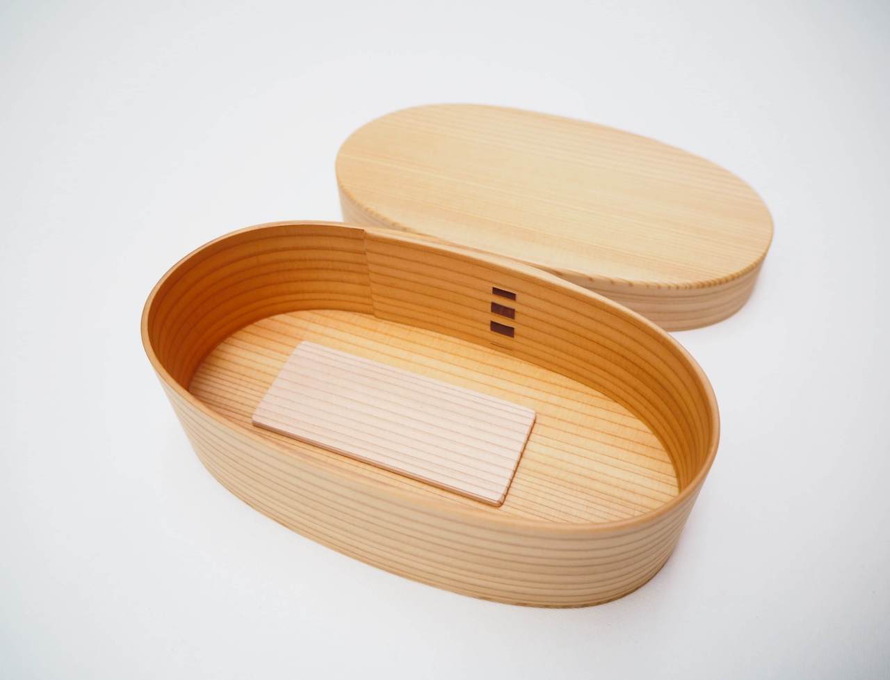 Magewappa is a way of steam bending wood than has been designated one of Japans Traditional Crafts by the Association for the Promotion of Traditional Craft Industries. This labour-intensive process involves softening planks of Cedar (sugi) before forming them into round shapes and drying them. Magewappa is notable for the light colour of the wood, and the straight grain lines that can be seen around the bento boxes.